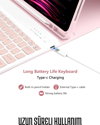 Uzun Bekleme Süresi: Klavyenin çalışma süresi 30 saattir, bekleme süresi 60 gün sürebilir ve şarj işlemi yalnızca 2-3 saat sürer. Pil ömründen tasarruf etmek için klavye kılıfı açılıp kapatıldığında otomatik uyku/uyanma başlar. Klavye 10 dakika boyunca kullanılmadığında iPad'in bağlantısı otomatik olarak kesilir ve onu uyandırmak için klavyedeki herhangi bir tuşa basabilirsiniz.