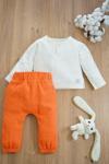 - Bebek ve çocuklar için özel olarak tasarlanmış, örme müslin kumaştan üretilmiş uzun kollu ikili takım