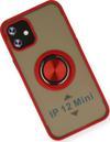 iPhone 12 Kılıf Montreal Yüzüklü Silikon Kapak - Kırmızı