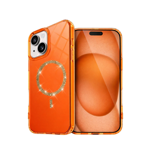 iPhone 14 Live Diamond Magsafe Kapak - Turuncu