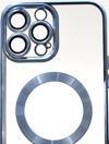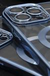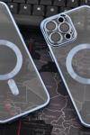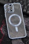 Novka iPhone 14 Pro Max Uyumlu MagSafe Özellikli Saks Mavi Renkli Kenarlı Lazerli Şeffaf Kılıf Lens Korumalı