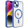 iPhone 14 Uyumlu Wireless Şarj Özellikli MKST Krom Magsafe Silikon Kılıf-Mavi