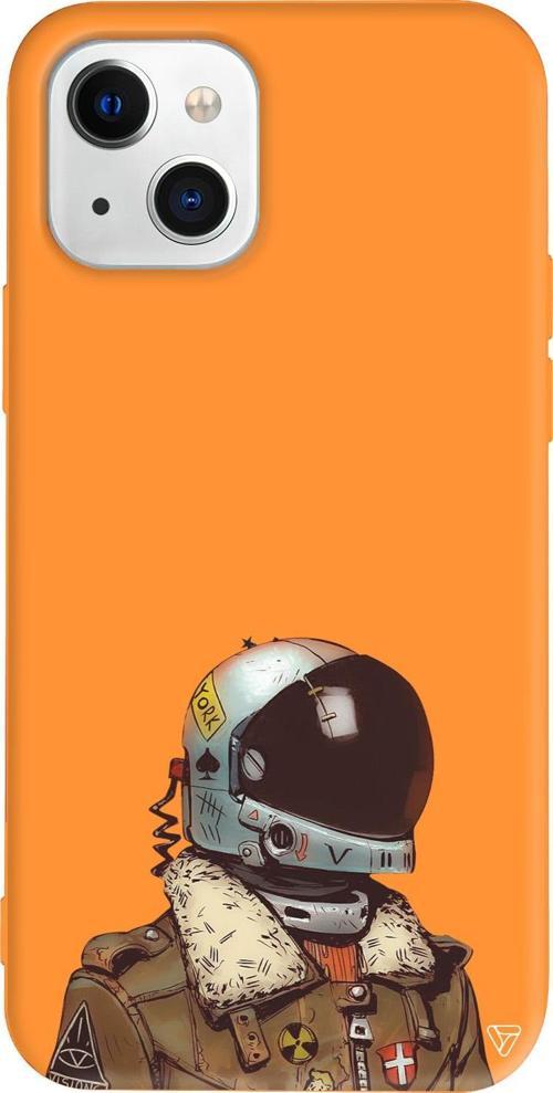 Trihed iPhone 15 Plus Uyumlu Turuncu Renkli Silikon Motorcycle Man (Motorcu) Telefon Kılıfı