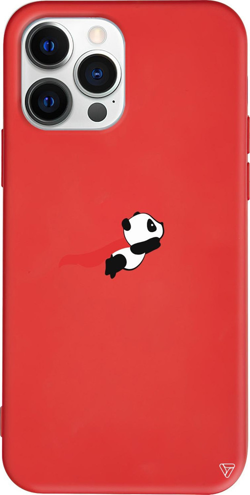 Trihed iPhone 15 Pro Max Uyumlu Kırmızı Renkli Silikon Uçan Panda Telefon Kılıfı