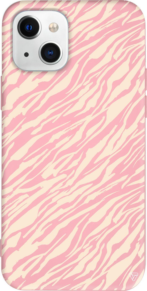 Trihed iPhone 15 Uyumlu Pembe Renkli Silikon Capraz Zebra Gold Desenler Koleksiyonu Telefon Kılıfı