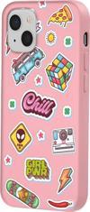 Trihed iPhone 15 Uyumlu Pembe Renkli Silikon Chill Sticker Koleksiyonu Telefon Kılıfı