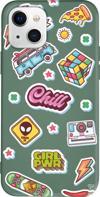 iPhone 15 Uyumlu Yeşil Renkli Silikon Chill Sticker Koleksiyonu Telefon Kılıfı