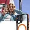 Maks Technology iPhone 16 Uyumlu Magsafe Şarj Özellikli Renkli Kenar Airbag Şeritli MKST Lamer Kapak-Turuncu