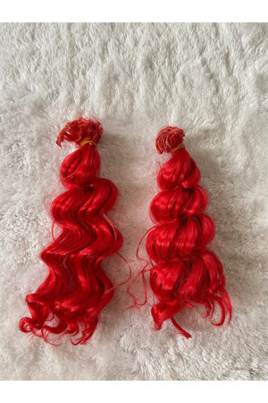 Amigurumi Sentetik Kıvırcık Saç Oyuncak Bebek Saçı 15 Cm ( 2 Adet Fiyatı ) Kırmızı