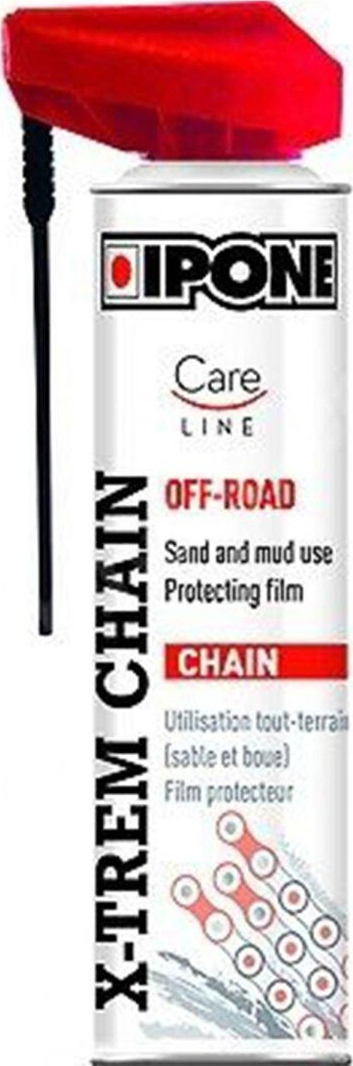 - Ipone Xtreme Chain Off-Road, zincir tahrikli tüm motosikletlerde kullanilabilen; yüksek tutunma gücü, yağlama ve koruma özellikleriyle öne çıkan teflon bazlı üstün kaliteli bir zincir yağlama spreyidir.