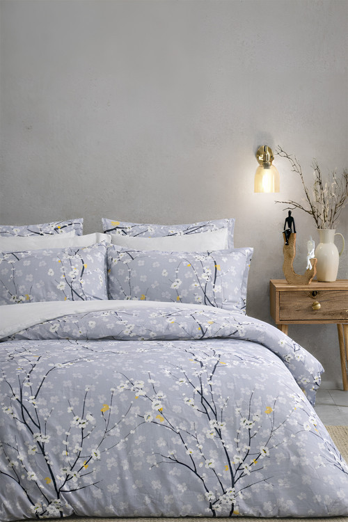 Çiçek desenleriyle süslenmiş, göz alıcı bir tasarıma sahip çift kişilik nevresim takımı, yatak odanızın atmosferini canlandırır
