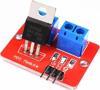 IRF520 Mosfet sürücü kartı yüksek akım anahtaralama uygulamalarında kullanılmak üzere geliştirilmiştir. 24V 5A gücünde anahtarlama yapma kapasitesine sahiptir. 3-5V seviyesinde sinyaller ile sürülebilmektedir. Bu sayede arduino ve diğer mcu kitleri ile kullanılabilmektedir. Pwm özellikli mcu pinleri ile sürülebilir. AC güçlerin kontrolü için uygun değildir. Yüksek güçlerde anahtarlama yapıldığında soğutucu ile kullanılmalıdır.