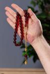 Tesbimiz, tamamen kendi atölyelerimizde, en kaliteli malzemeler ve ileri boyama teknikleri kullanılarak özenle üretilmiştir. Tesbih severlerin beğenisine sunulan bu ürün, gündelik kullanıma uygun olmasının yanı sıra iri boyutuyla dikkat çeker. Vişne tonları ile toz kehribarın zarif işçiliğiyle, tesbihinizi her eliniz