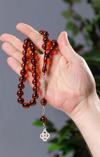 İri Taneli Kızıl Renk Çay Fosilli Toz Kehribar Tesbih, doğal ve etkileyici bir görünüme sahip özel bir aksesuardır.