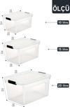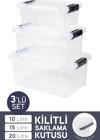 İronika 3'lü Saklama Kabı Yatay Dikdörtgen Kilitli Kapaklı Çok Amaçlı Oyuncak Saklama Kutusu 10-15-20 Litre