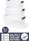 İronika 3'lü Saklama Kabı Yatay Dikdörtgen Kilitli Kapaklı Çok Amaçlı Oyuncak Saklama Kutusu 15-20-30 Litre