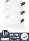İronika 3'lü Saklama Kabı Yatay Dikdörtgen Kilitli Kapaklı Çok Amaçlı Oyuncak Saklama Kutusu 15 Litre