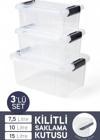 İronika 3'lü Saklama Kabı Yatay Dikdörtgen Kilitli Kapaklı Çok Amaçlı Oyuncak Saklama Kutusu 7,5-10-15 Litre