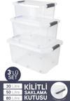 İronika 3'lü Tekerli Saklama Kabı Dikdörtgen Kilitli Kapaklı Çok Amaçlı Oyuncak Saklama Kutusu 30-50-80 L