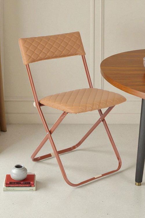İronika Anatolia Metal Gövdeli Deri Kapitone Katlanır Sandalye, estetik tasarımıyla mutfak ve bahçelerde şıklığı ön plana çıkarır.