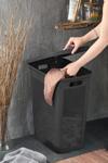 Dekoratif tasarım: İronika Slim Kapaklı Dekoratif Kirli Çamaşır Sepeti, modern ve estetik görünümüyle banyolarda şık bir tamamlayıcıdır.