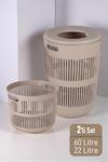 Set içeriğinde biri 60 litre kirli çamaşır sepeti, diğeri 22 litre temiz çamaşır sepeti olmak üzere iki farklı boyda sepet bulunmaktadır.