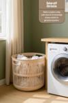 Kapaklı büyük sepet, kirli çamaşırları gizlerken dekoratif bir görünüm sağlar.