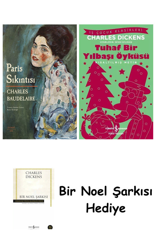 Paris Sıkıntısı (Ciltli)Charles Baudelaire’in (1821-1867) ölümünün ardından, 1869’da ilk kez kitaplaşan ve şairin 50 düzyazı şiirini bir araya getiren Paris Sıkıntısı, Kötülük Çiçekleri’nde ele alınan temaların yeni ve daha derinlikli bir araştırması gibidir.; Baudelaire burada modern Paris’i bütün çelişkileriyle; ihtişamı, sefaleti ve melankolisiyle gözler önüne sererken, biçimsel olarak da geleneksel şiirin sınırlarını aşan, çağa özgü değişim ve belirsizlik halini temsil edecek yeni bir şiire yönelir.; Kenan Sarıalioğlu’nun çevirdiği bu eşsiz şiirleri Fransızca özgün metinle bir arada sunuyoruz.; Her zaman sarhoş olmalı.; Her şey burada: Tek mesele bu.; Omuzlarınızı ezip sizi toprağa çeken Zaman’ın korkunç ağırlığını duymamak için sarhoş olmalısınız, hiç ara vermeden.; Ama neyle? Şarapla, şiirle ya da erdemle, nasıl isterse gönlünüz.; Ama sarhoş olun.; Ve arada bir, bir sarayın basamakları üstünde, bir hendeğin yeşil otları üstünde, odanızın kasvetli yalnızlığında, sarhoşluğunuz azalmış ya da büsbütün geçmiş halde uyanırsanız, sorun o zaman rüzgâra, dalgaya, yıldıza, kuşa, duvardaki saate, kaçıp giden her şeye, inleyen her şeye, yuvarlanıp giden her şeye, şakıyan, konuşan her şeye sorun, saat kaç deyin; rüzgâr, dalga, yıldız, kuş, duvardaki saat karşılık verecekler size: “Vakit, sarhoş olma vaktidir! Zamanın inlettiği köleler olmak istemiyorsanız sarhoş olun; sarhoş olun durmadan! Şarapla, şiirle ya da erdemle, gönlünüz nasıl isterse!”+ Tuhaf Bir Yılbaşı Öyküsü – Kısaltılmış Metin: Ebenezer cimri, huysuz ve bencil bir adamdı.; Kimseyle arkadaşlık etmez, eğlencelere katılmaz, işinden başka bir şey düşünmezdi.; Çok parası olduğu halde, kimseye yardım etmezdi.; Dünya üzerinde, iyi kalpli yeğeninden başka seveni yoktu ama Ebenezer bunu da dert etmezdi.; Hiç kimseye ihtiyacı olmadığını düşünürdü.; Ancak Yılbaşı öncesi kapısını çalan bir ziyaretçi her şeyi değiştirdi.; Aslında ziyaretçi kapıyı çalmamış, doğrudan içinden geçmişti.; Bu garip ziyaretçinin, eski arkadaşına anlatacak çok önemli şeyleri vardı.; + Bir Noel Şarkısı: Charles Dickens (1812-1870): Viktorya Dönemi İngilteresi'nin en önemli romancısı kabul edilen Dickens orta sınıf bir ailenin çocuğuydu.; On iki yaşındayken ailesinin dara düşmesi sonucu bir fabrikada çalışmaya başladı ve romanlarında büyük bir isabetle aktardığı işçi sınıfının hayatını gözlemleme fırsatını elde etti.; Dickens'ın belki de en popüler eseri Bir Noel Şarkısı 1843 yılının Noel'inden hemen önce yayımlanmış, ilk baskısı günler içinde tükenmiştir.; Noel'in insani yönüne vurgu yaparak bu bayramın kutlanışını değiştirmiş, Viktorya Dönemi'nde Noel'in canlanmasına katkıda bulunmuştur ve İngiliz toplumunu öyle çok etkilemiştir ki kahramanının soyadı 'pinti' anlamında sözlüklere girmiştir.; Cimri, nemrut Ebenezer Scrooge'un, ona geçmişini, bugününü ve geleceğini gösteren üç hayaletin yardımıyla gerçekleşen büyük değişimini anlatan bu modern masalın sıcacık ışığı, sözünü saklamayan bir toplumsal eleştirmen olan Dickens'ın içinde yaşadığı gerçek dünyaya yorumunu da aydınlatır.; Bir Noel Şarkısı günümüze dek birçok dile çevrilmiş, defalarca sahneye, sinema ve televizyona uyarlanmıştır.; Siparişleriniz, kargo sürecinde zarar görmemesi için dikkatle paketlenerek gönderilir.; Dilerseniz hediye paketi seçeneğinden faydalanabilirsiniz.; Ayrıca sevdiklerinize özel bir sürpriz yapmak isteyen müşterilerimiz için kişiye özel hediye notu hazırlanabilmektedir.; Hediye paketi ve not taleplerinizi sipariş esnasında belirtmeniz yeterlidir.; Ürün görsellerinde ve açıklama kısmında belirtilen tüm ürünler eksiksiz ve belirtilen şekilde gönderilmektedir.; Müşteri memnuniyeti önceliğimizdir.; Ürünle ilgili her türlü soru, talep ve destek için Ürün Sorusu bölümünden bizimle iletişime geçebilirsiniz.