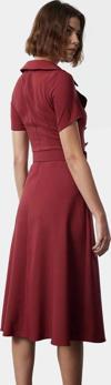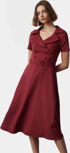 Profesyonel görünümünüzü tamamlayacak, kusursuz bir iş elbisesi arıyorsanız doğru yerdesiniz! Bordo rengi ve şık tasarımıyla dikkat çeken bu elbise, gün boyu kendinizi güvende ve rahat hissetmenizi sağlayacak. Yüksek kaliteli dokuma kumaştan üretilen elbise, nefes alabilir yapısıyla konfor sunar. Skater kalıbı, feminen bir siluet oluştururken, balon kolları modern bir dokunuş katıyor.
