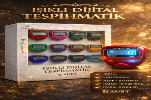 Farklı renk seçenekleri ile sunulan dijital tesbihmatik seti, günlük kullanım için ideal bir yardımcıdır. Hem bireysel kullanım hem de hediye olarak tercih edilebilecek pratik ve kullanışlı bir üründür.