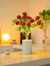 Aydınlatma: Elma figürlerinin içine veya yaprakların arasına entegre edilmiş LED ışıklar yaydığı yumuşak ve sıcak bir ışıkla (genellikle sarı tonlu) gece lambası işlevi görür. Bu ışık, rahatlatıcı ve loş bir ortam yaratır.