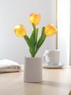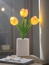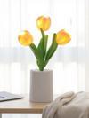Aydınlatma: Lale yapraklarının arasına veya çiçeğin merkezine gizlenmiş LED ışıklar yaydığı yumuşak ve sıcak bir parıltı ile gece lambası işlevi görür. Işık, loş ve davetkar bir atmosfer oluşturur.