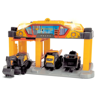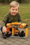 Set içerisinde vinçli istasyon, ekskavatör ve damperli kamyon bulunur. Çocuklar hem istasyonu hem araçları aynı anda kullanarak kendi inşaat alanlarını kurabilir, hayal güçlerini sınırlarını zorlayarak saatlerce keyifle oynayabilirler.