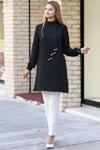 Hafsa Mina Fermuarlı 3 İplik Şardonlu Dik Yaka Sweatshirt Tunik Siyah HM2650