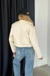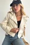 Işılda Oversize Kadın Krem Biker Deri Ceket