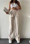 Işılda Yüksek Bel Palazzo Pantolon Taş 36