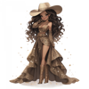 Siyah ve Altın Işıltılı Elbiseli Kovboy Kız Duvar Stickerı - Image 1