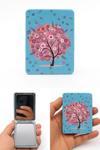 Kesene Işıltılı Yapraklar Sonbahar Sevgi Ağacı Temalı Katlanabilir Büyüteçli Mini Cep Makyaj Aynası Mavi