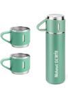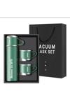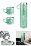 İsime Kişiye Özel Hediye 3 Bardaklı Paslanmaz Çelik Vakumlu Kahve Sıcak Soğuk Kamp Termos Seti Yeşil