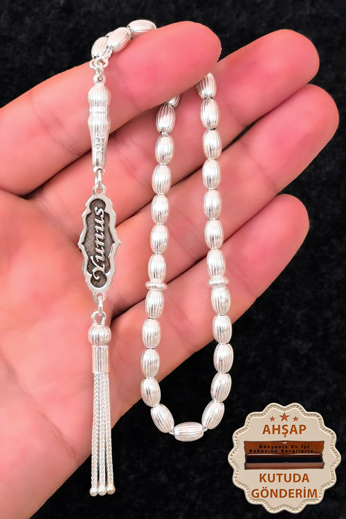 Ürün Hakkında : İsimli gümüş tesbih , erkek çizgili arpa kesim isim yazılabilen kişiye özel erkek gümüş isimli tesbih modeli 925 ayar. El işçiliğiyle üretilen bu tesbih, 925 ayar gümüşten üretilmiştir. Hem günlük kullanımda hem de özel günlerde şıklığınızı tamamlar.