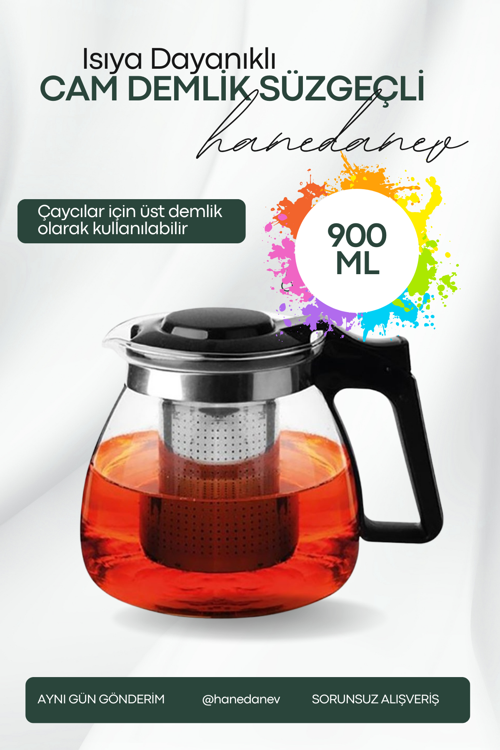 - Demlik alt boğum dediğimiz çaydanlık üstüne oturan kısmı 10,0 cm dir. Alt bölümün toplamı 13,0 cm dir. Yükseklik 13 cm dir. Süzgeçli cam demlik tea pot (çay kahve ve bitki çayı çaydanlığı 900 ml) güne keyifle başlayacağınız muhteşem bir kahvaltının olmazsa olmazı "çay" yada "kahve" süzgeçli demlik tea pot ile lezzetli, demini almış bir çay yada kahvede gerçekten keyfinizi yerine getirmeye yeter ! Süzgeç haznesi sayesinde istediğiniz bitki çaylarını da kolayca demleyebilirsiniz. Pratik ve kullanışlı yapıdadır. Plastik kulbu sayesinde ısı ne olursa olsun rahatlıkla tutmanızı sağlar. Sertleştirilmiş şeffaf cam gövde sayesinde ısıya dayanıklıdır. Zarif ve şık tasarım ile mutfağınıza keyif verecektir. Ürün özellikleri: Çay, kahve yada bitki çayları demleme kolaylığı sertleştirilmiş şeffaf cam gövde kolay çıkarılabilir ve yıkanabilir süzgeç şık tasarım ve 900 ml kapasite ısıya dayanıklı olma özelliği paket içeriği: 1 adet çay kahve cam servis demlik