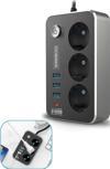 Aybastılı Isıya Dayanıklı Termal Akım Korumalı 2 Mt 10A 2500W 3lü Priz ve 3 Usbi 2.1A Uzatma Kablosu
