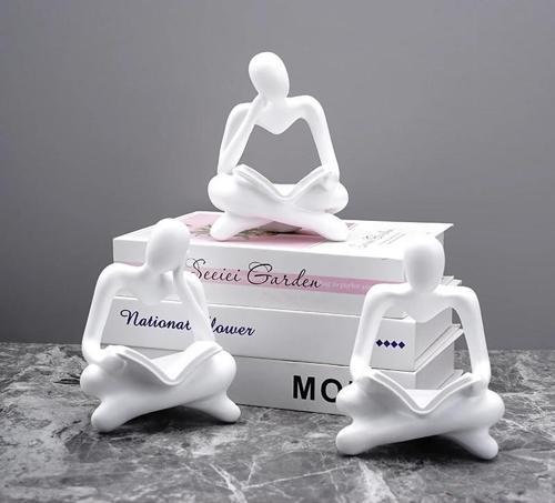 SUME İskandinav Tarz 3 Adet Lüks Stil Kitap Okuyan İnsan Figürü Soyut Şekil Biblo Heykel Ev Dekorasyon Süsleri Masa Dekoru Raf Dekoru