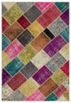 Halinet Teselya Mor Patchwork Etnik Modern Desenli Yün Hav Toz Vermez Leke Tutmayan Salon Yolluk Mutfak El Dokuma Halı