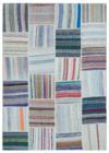 Halinet Gri Patchwork Etnik Modern Desenli Yün Hav Toz Vermez Leke Tutmayan Salon Yolluk Mutfak El Dokuma Halı