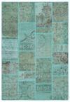 Halinet Iskece Turkuaz Eskitme Etnik Modern Desenli Yün Hav Toz Vermez Leke Tutmayan Salon Yolluk Mutfak El Dokuma Halı