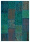 Turkuaz Patchwork Etnik Modern Desenli Yün Hav Toz Vermez Leke Tutmayan Salon Yolluk Mutfak El Dokuma Halı - Image 1