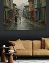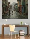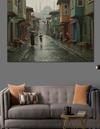 Islak Sokakta Yalnız Kadın Dekoratif Kanvas - Mdf Ahşap Tablo