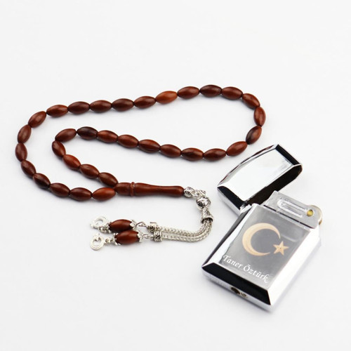 İsme Kişiye Özel Ayyıldız Tasarımlı Gazlı Çakmak Kuka Tesbih Seti |