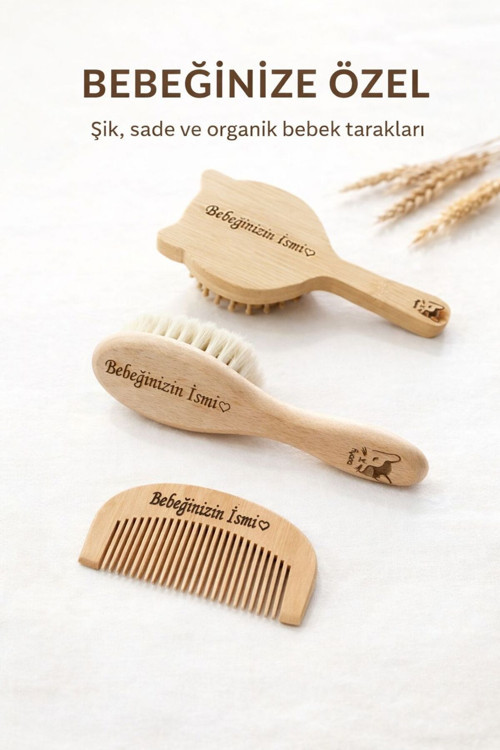 İsme Özel Keçi Kılı Fırça + Macromen Tarak + Bambu Kedi Tarak + Özel Hediye Kese ve Kutusu Hediyelik
